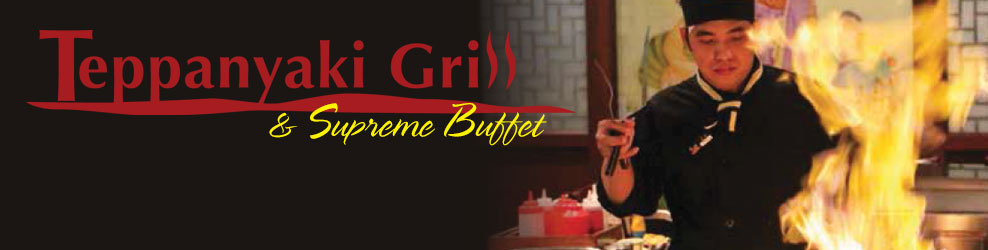 Teppanyaki Grill & Supreme Buffet Menu and Prices FREE COUPONS. Teppanyaki Grill & Supreme Buffet Categories. Buffet To Go Dinner Buffet Lunch Buffet Sample Menu. Menus With Price ... 7 Locations in 6 States. 5.0 based on 68 votes. Teppanyaki Grill & Supreme Buffet Near Me. IN MI NJ NC PA VA. Teppanyaki Grill & Supreme Buffet Menu and Prices. Click to order online. Buffet To Go Dinner Buffet ...