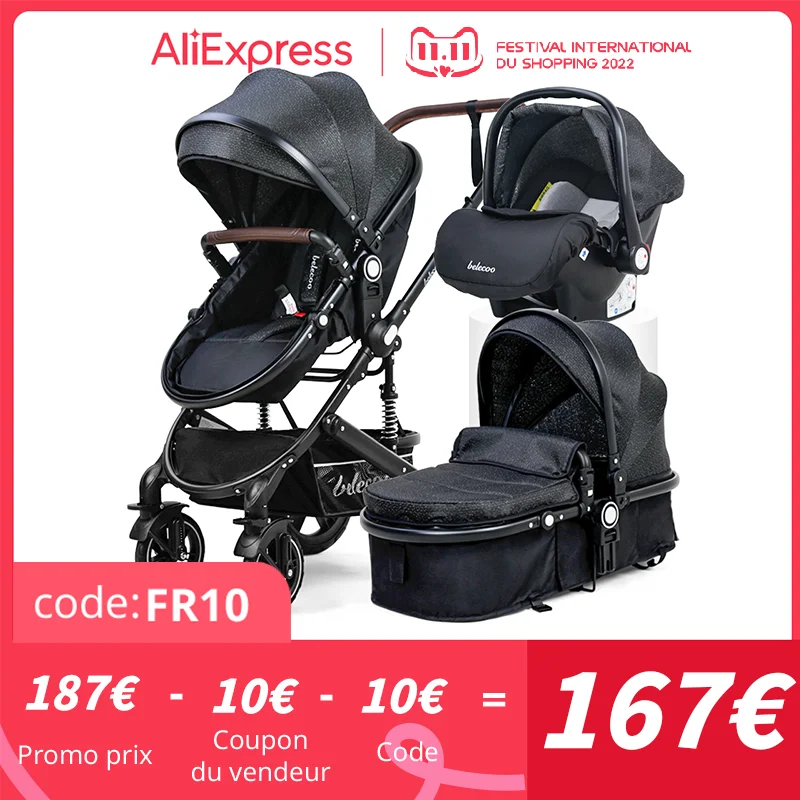Belecoo Baby Stroller 3 in 1 Baby Stroller High landscape Fit Newborn Travel Foldable Stroller CE Approved Black Stroller